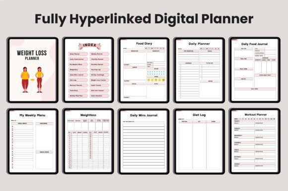 Digital Weight LOSS Planner Canva Interior, You will get a high-quality Digital WEIGHT LOSS Planner for your custom use,