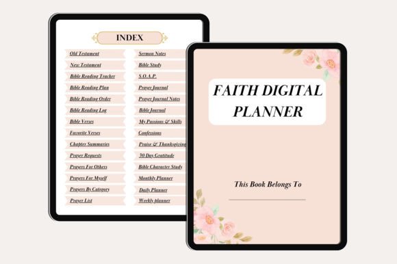 Faith Digital Planner Canva Templates, you can edit it easily using a free Canva account, You will get high-quality Print-ready PDF Files, and JPEG files with editable Canva links.